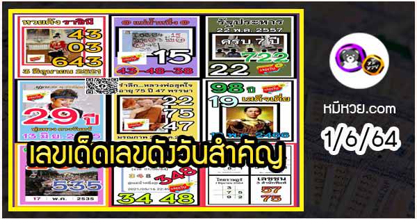 64 ตรวจหวย 1/6/64 ตรวจหวยงวดนี้ 1 มิ.ย.